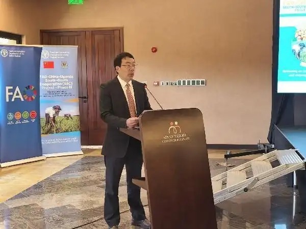 4月16日,中国-联合国粮农组织(FAO)-乌干达南南合作(三期)项目总结会在乌干达首都坎帕拉成功举办。乌干达农牧渔业部部长弗兰克・图姆韦巴泽,FAO南南合作与三方合作司司长叶安平,中国农业农村部外经中心书记郭立彬,中国驻乌干达大使馆临时代办范学成、参赞王建勋,联合国系统驻乌干达协调员列奥纳德・祖鲁,FAO驻乌干达代表伊扎纳・卡萨,中乌项目团队代表等约200人出席活动。我厅副厅长伍修强率团出席活动并致辞。4月19日,中方专家组全体成员乘机抵达成都天府国际机场,圆满完成三年对乌农业技术援助任务,载誉归来。